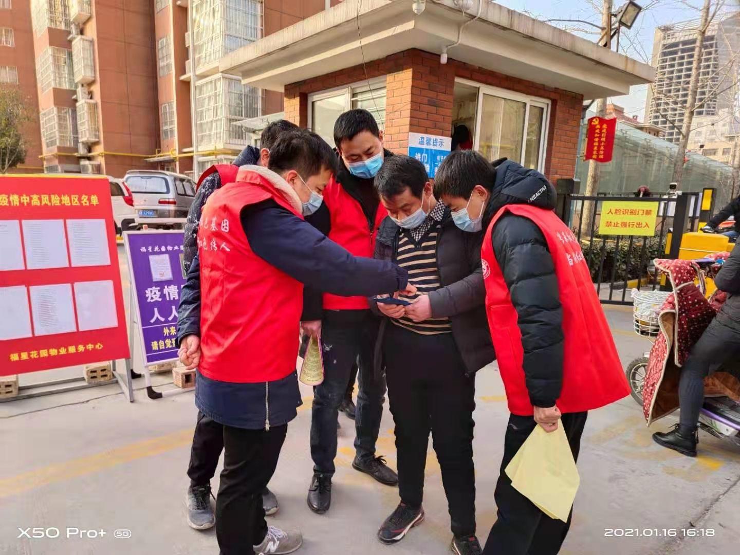 ——富华社区各个小区党支部积极行动,组织党员志愿者对小区内返富人员上门摸排。