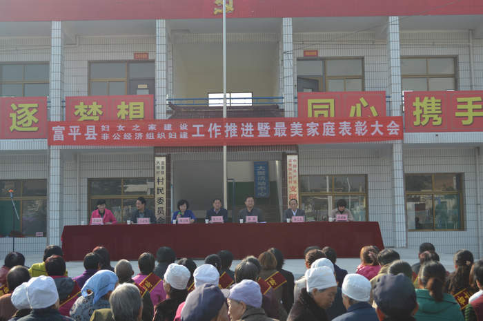 11月5日,富平县妇女之家建设和非公经济组织妇建工作推进暨最美家庭表彰会在宫里镇大樊村举行,县人大主任赵升良、县委常委、县纪委书记薛斌、县非公党建党工委书记、县工商局副局长魏文光、县妇联主任邱玉凤等同志参加了表彰会。表彰会前,县上领导和各乡镇、受表彰的同志参观了宫里镇大樊村“省级妇女之家示范点”。随后,对我县近年评选出在妇女工作中成绩突出的先进分子及“最美家庭”予以表彰。这是我县非公党建工作带动工、青、妇建设的又一硕果。