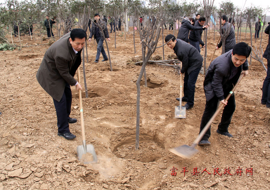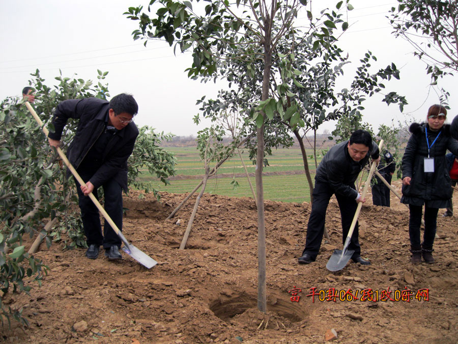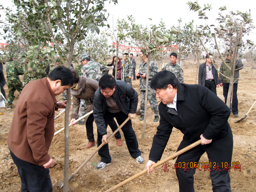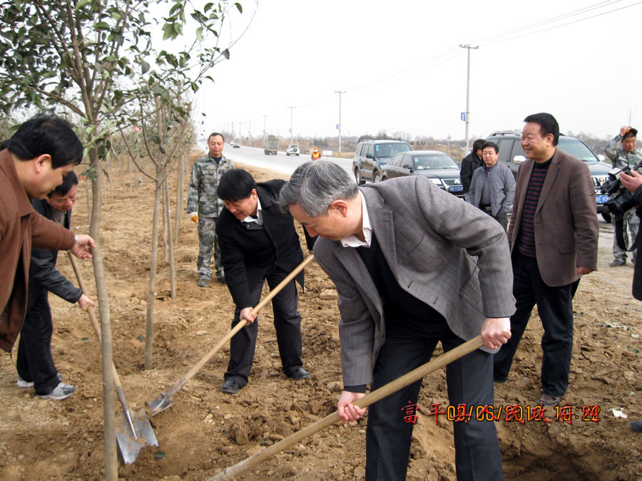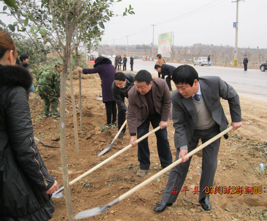 3月6日上午,我县组织城区机关干部职工在县城荆山大道(东一环)西侧进行义务植树活动,省林业厅厅长张社年、市林业局局长王万胜,县委书记郑成瑞、县长王建平等县级领导和城区机关单位干部职工近千人参加植树活动。