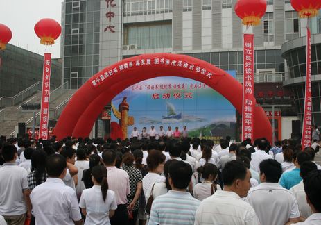 7月9日,富平县近千名党政机关、企事业单位党政干部汇集在该县宣教文化中心广场,参加该县组织部主办的“读好书、提境界、谋发展”大型读书漂流活动。