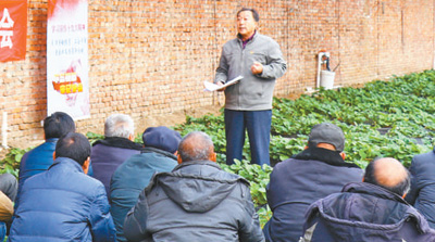 王洪旗(站立者)在基层宣讲十九大精神。吴奕君摄
