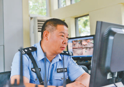吕建江在警务站工作。陈建宇摄(资料照片)