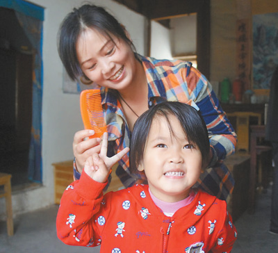 图为金玉琴在帮助村民的孩子梳头。方 春摄