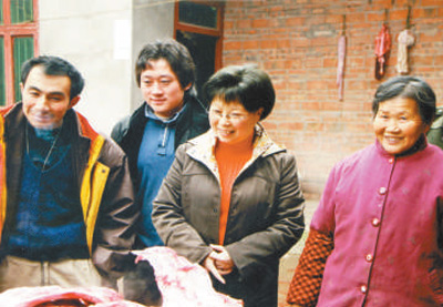 王瑛(右二)在和村民交流。资料照片