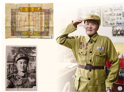 图①:张富清当年的报功书翻拍。图②:张富清年轻时的照片翻拍。图③:张富清近照。