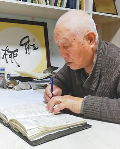 刘铭庭伏案工作。刘渠华摄(影像中国)