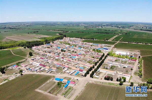 黑龙江省龙江县七棵树镇双龙村的部分房屋和耕地(6月20日无人机拍摄)。新华社记者 王建威 摄