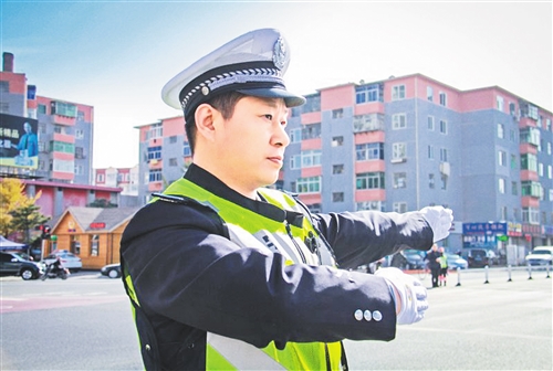 辽宁锦州滨海新区交警大队大队长王志海在执勤。(资料图片)记者 张允强
