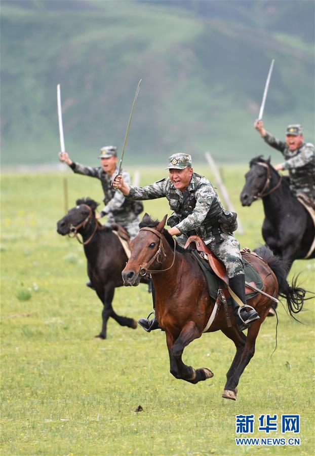 7月6日,西部战区陆军某旅玉树独立骑兵连连长尼都塔生在训练中。