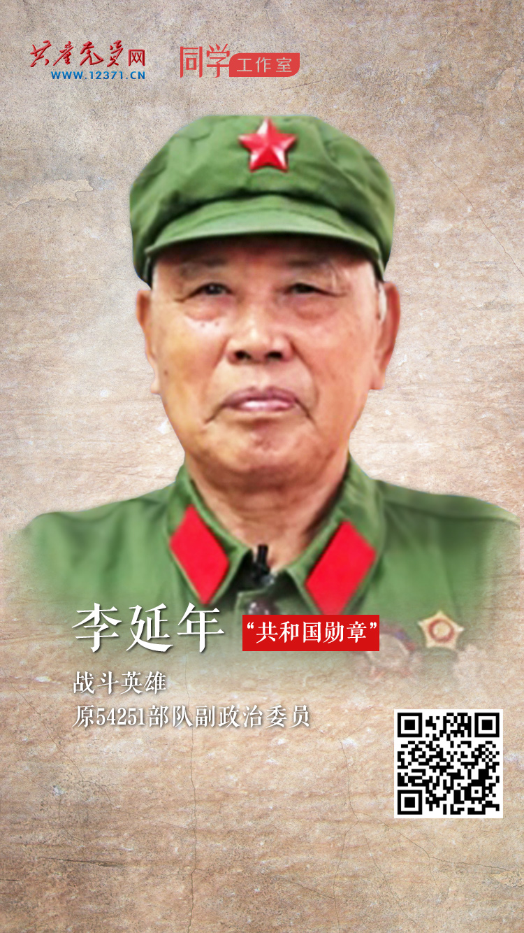李延年,男,汉族,中共党员,1928年11月生,河北昌黎人,原54251部队副政治委员。1945年参加革命,先后参加解放战争、湘西剿匪、抗美援朝战争、对越自卫反击战等战役战斗20多次,是为建立新中国、保卫新中国作出重大贡献的战斗英雄。离休后,他初心不改、斗志不减、本色不变,积极弘扬革命优良传统,充分展现了一名老革命军人、老战斗英雄的光辉形象。荣立特等功一次,被志愿军总部授予“一级英雄”称号,荣获解放奖章和胜利功勋荣誉章。