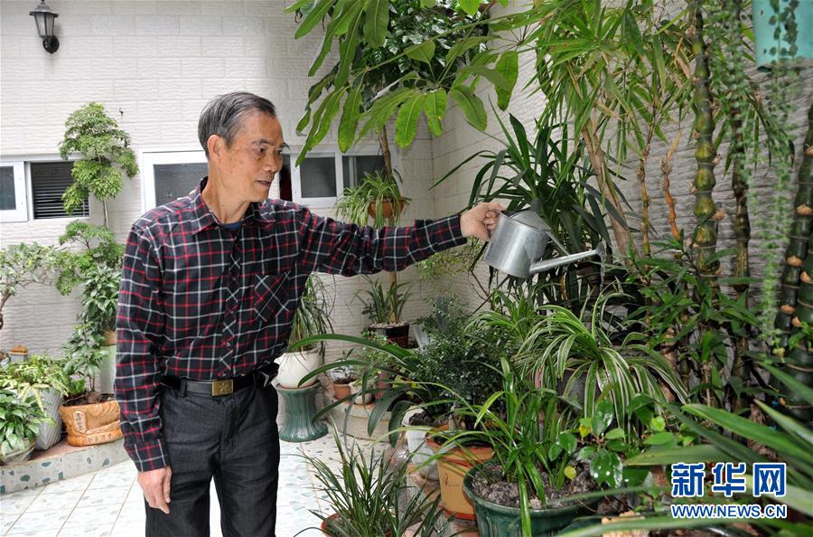 麦贤得在家中浇花(2016年12月27日摄)。新华社记者 周科 摄