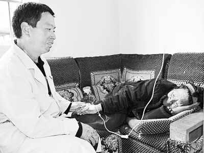 邓前堆妻子的疑虑不仅在于村医的辛苦,还在于待遇低。2010年以前,邓前堆每月只有200元工资,近3年增加到2000元左右。由于过度劳累,55岁的邓前堆身患高血压,在2013年得了白癜风。但他不在意这些困难,他坐在卫生室大片掉皮和破洞的椅子上,打开几本门诊日志给记者看,上面用工整的字迹写满了病人的基本情况。他又从柜子里抱出一堆处方,略带自豪地说:“每个病人都有清楚的记录,去年看了1206个病人,今年到现在看了970个病人。”