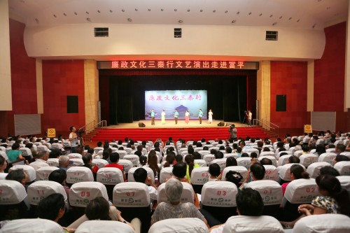 传播廉政文化,弘扬清廉风尚。近日,由省纪委、省监察厅、省文化厅联合举办的“廉政文化三秦行”文艺演出在富平县文化中心举行。省纪委驻省文化厅纪检组长金育欣、省纪委驻省文化厅纪检副组长、监察室主任丁雪燕及富平800余名领导干部群众一起观看了演出。县委常委、纪委书记薛斌致辞。