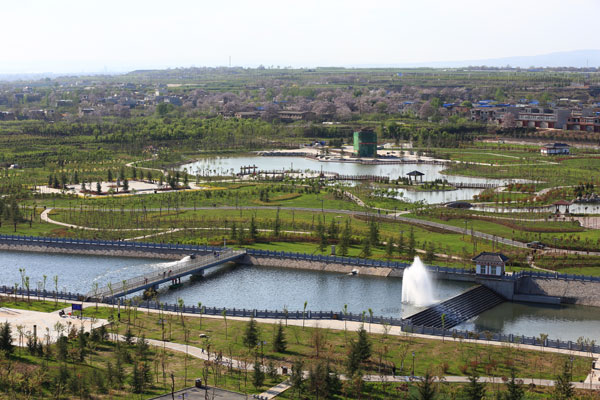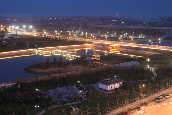 温泉河湿地公园位于富平县城北部温泉河城区段,公园占地1500亩,于2014年3月开始建设,2015年元旦向市民开放。 公园内有健身活动广场5万平方米、景观道路6000米、交通主干道路3000米、明月湖水面2万平方米、绿化50万平方米,配套有“富庶太平”大型雕塑、民俗雕塑群、假山、水上喷泉、公厕、停车场,同时园区建设有喷灌设施、照明系统、背景音乐等。温泉河河道建设滚水坝两座、步行桥两座,河道蓄水30万立方米,水源由城市中水和上游客水补充。 湿地公园与县城北部的全国爱国主义教育示范基地、温泉河生态广场、陶艺文化产业园和西部的老城融为一体,形成集文化旅游、娱乐健身为一体的城市开放区。 (图片:韦睿)