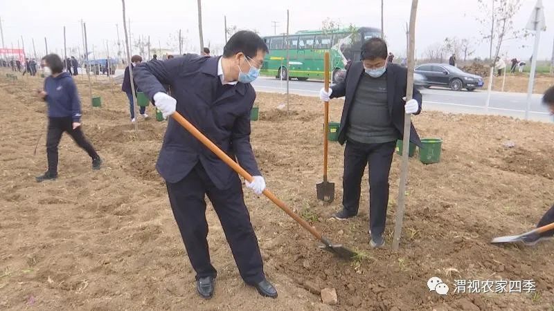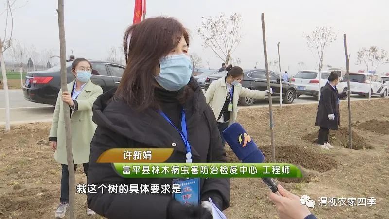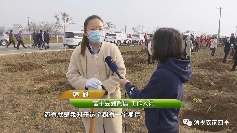 记者:全民义务植树,共创森林城市,那大家都知道3月12日是一年一度的植树节,今天我也是来到了富平县到贤镇,今天呢,富平县是有70多家单位在这里义务植树。